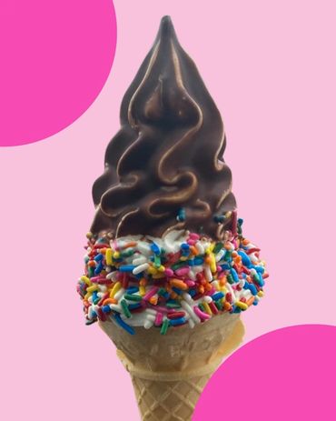 Any one cone- choice of Vanilla, Chocolate or twist. Choice of any one topping (rainbow or chocolate sprinkles OR cookie crunchies )